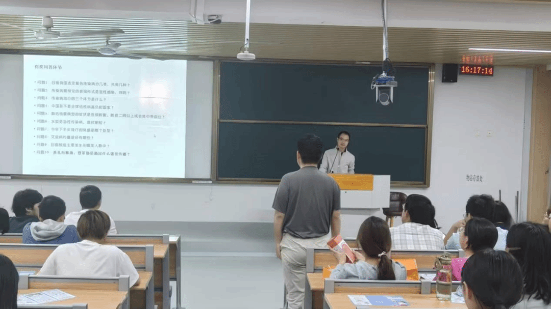 互动环节更是将现场气氛推向高潮。“法定传染病分为哪几类?”“传染病流行的三个关键环节是什么?”……一系列有奖问答题目激起师生们的参与热情,进一步巩固了所学知识,增强对防控要点的理解。针对不同情况,刘文山医生还提供了个性化防控建议。