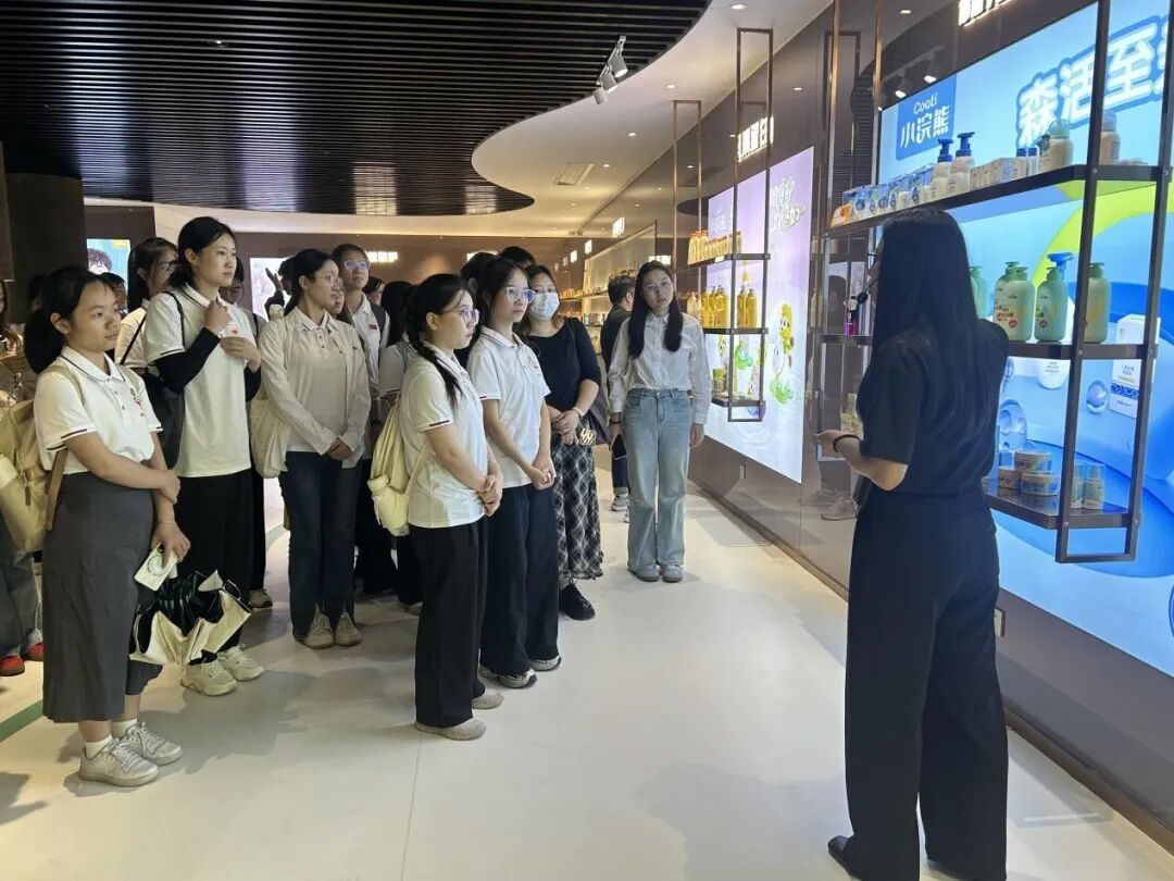 企业现场,同学们首先通过专题视频,全方位了解了梦娇兰公司的发展历程、核心业务、品牌理念及行业布局。从产品研发到市场拓展,从企业文化到发展规划,一个个详实的片段让大家对日用品行业的运营逻辑有了初步认知,也感受到企业深耕领域的专注与创新精神。