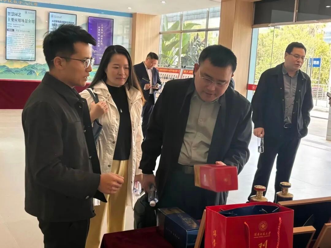 调研组一行在学院团委书记廖小文的陪同介绍下,深度了解了学院党建与业务深度融合之“闽师红”系列大学生科创精品,对学院党委立足闽南文化底蕴与漳州地方特色,创新开发的一系列特色产品表示赞扬,并鼓励学院进一步聚焦闽南文化创造性转化、创新性发展,助力漳州特色产业升级。