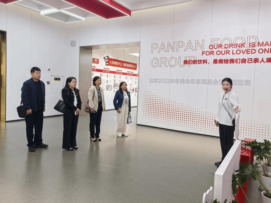 在盼盼集团总裁助理吴林增的热情接待下,张宏怡副校长一行首先参观了集团的企业文化展厅与部分生产车间,详细了解了盼盼集团的发展历程、企业核心文化、技术创新体系以及在休闲食品、健康饮品等领域的产业布局与成就。