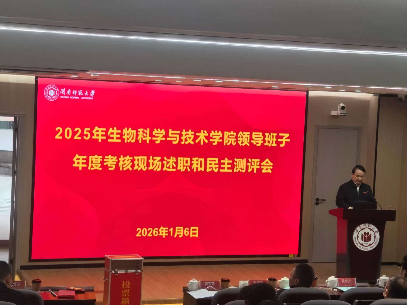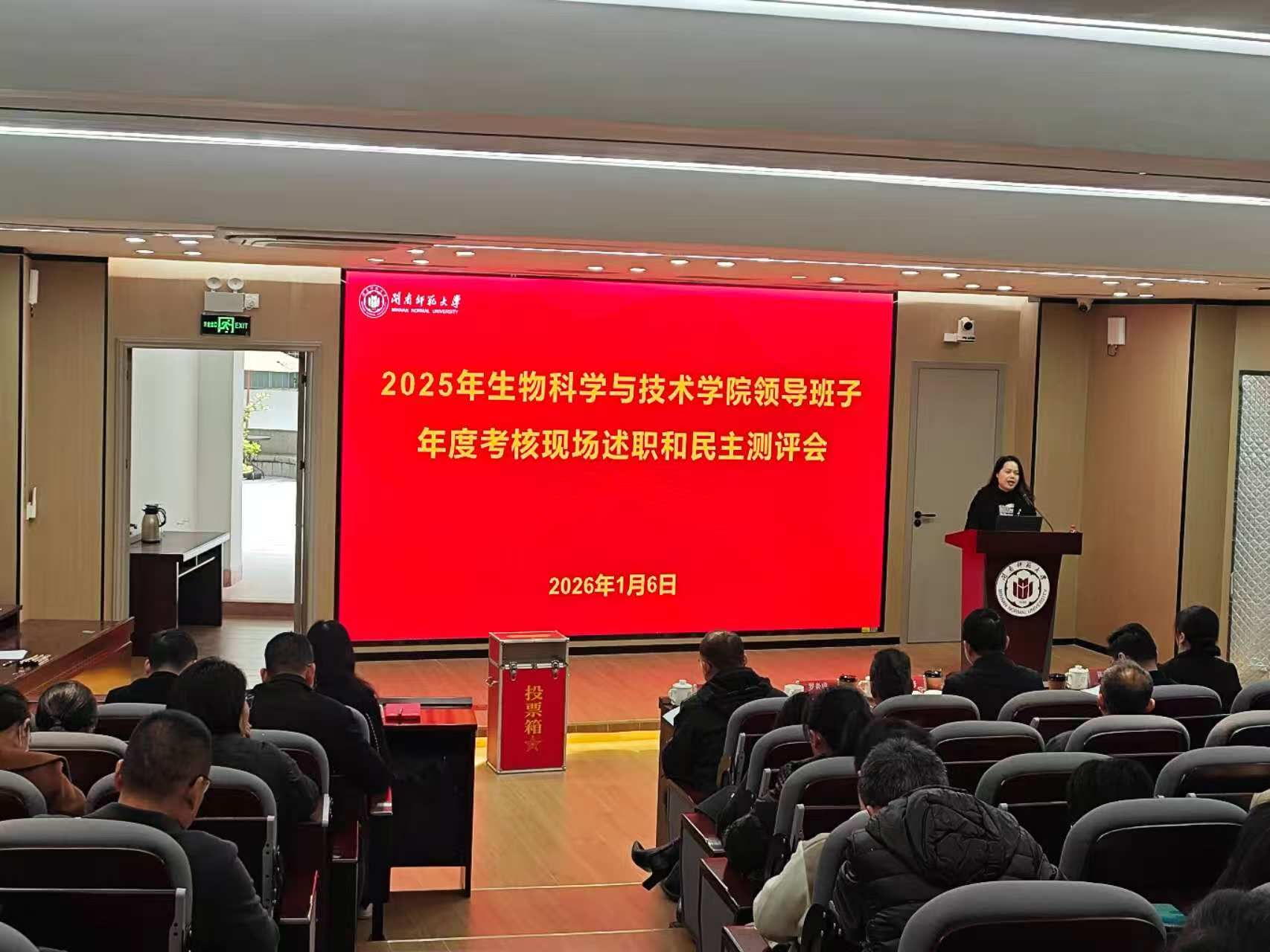 1月6日上午,生物科学与技术学院召开2025年度学院领导班子和中层领导干部考核述职测评会。校党委副书记、校长张龙海率学校考核检查组出席会议,学院全体教职工及学生代表参加会议。