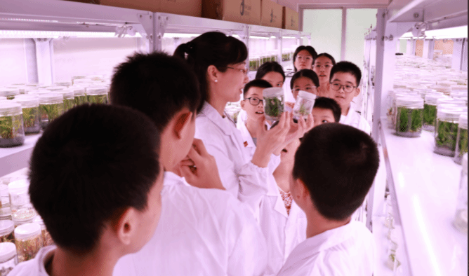 紧接着,老师带领学员们走进准备室、无菌操作室与培养室,细致讲解各类常用仪器的工作原理、使用方法,以及克隆苗从培育到生长的全过程。小学员们全程专注,不时发出“好神奇”的赞叹,对眼前的科学世界充满好奇。
