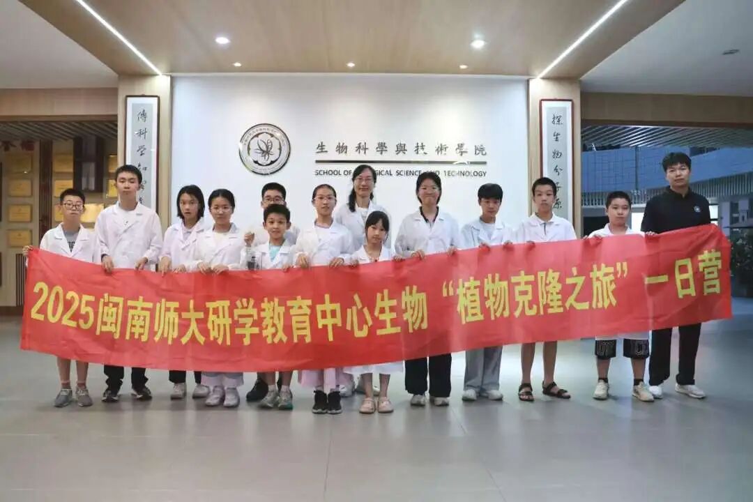 10月8日,闽南师范大学2025年国庆生物研学一日营在园艺生物技术实验室与无菌操作室热闹开启。来自多所学校的中小学生们在生物科学与技术学院蔡文燕老师的带领下,开启了一场探索植物克隆奥秘的趣味研学之旅。