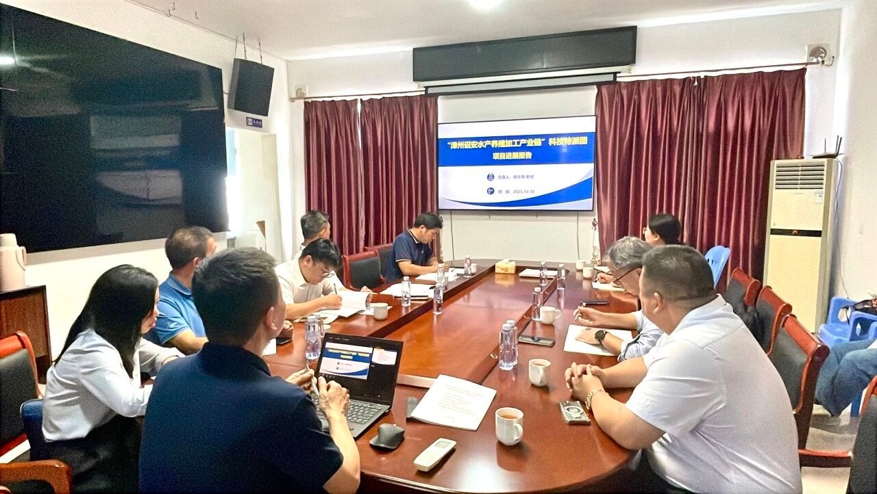 2025年10月30日,“漳州诏安水产养殖加工产业链”科技特派团项目中期评审活动在诏安县成功举行。漳州市科学技术局党组成员、二级调研员陈斌带领评审专家团队莅临现场,对项目阶段性进展进行专业评审与指导。生物科学与技术学院(以下简称“生科院”)教授刘静娜、副教授费鹏作为项目参与单位代表参与此次评审调研活动。